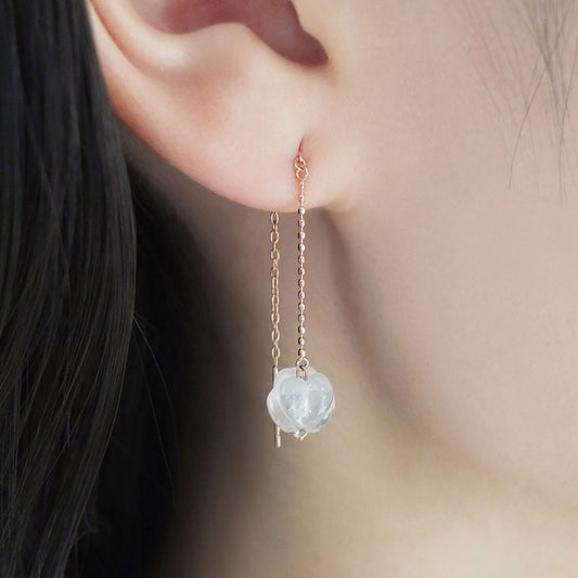 18K/10K Rose Quartz Threader Earrings [Peony] (Rose Gold)