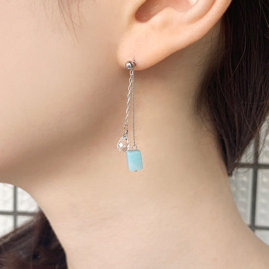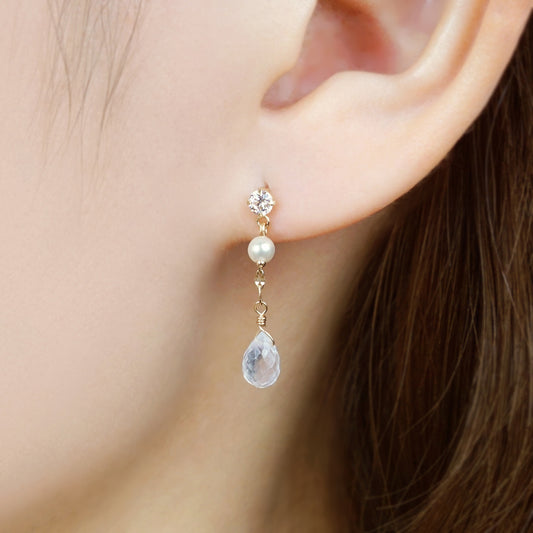 18K/10K Blue Moonstone Dew Drop Swinging Earrings (Yellow Gold)