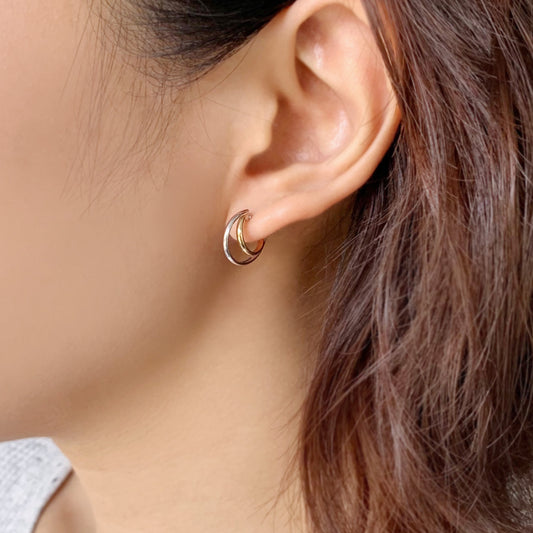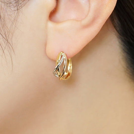 High Quality Tricolor Crossed Hoop Earrings (Platinum / 18K Yellow Gold / 18K Rose Gold)