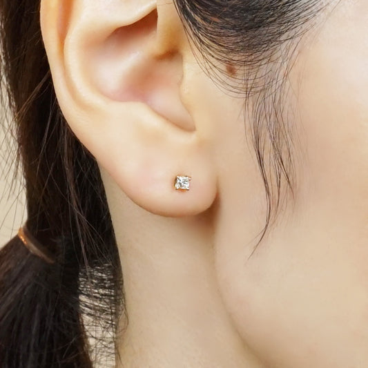[Second Earrings] 18K Princess Cut Diamond Earrings 0.18ct (Yellow Gold)