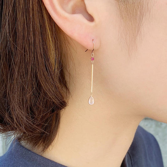 18K/10K Ruby Pillar & Dew Drop Earrings (Rose Gold)