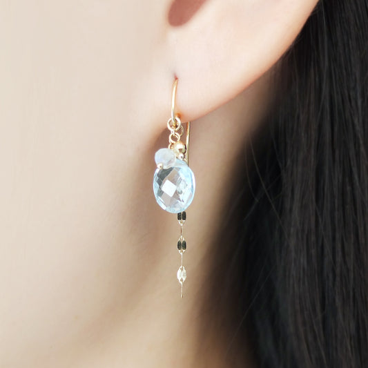 [Palette] 18K/10K Blue Topaz 2Way Charm Set Earrings [Ovalline] (Yellow Gold)