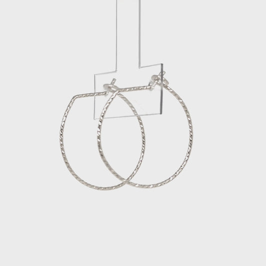 14K/10K Flower Cut Slim Hoop Earrings (White Gold)