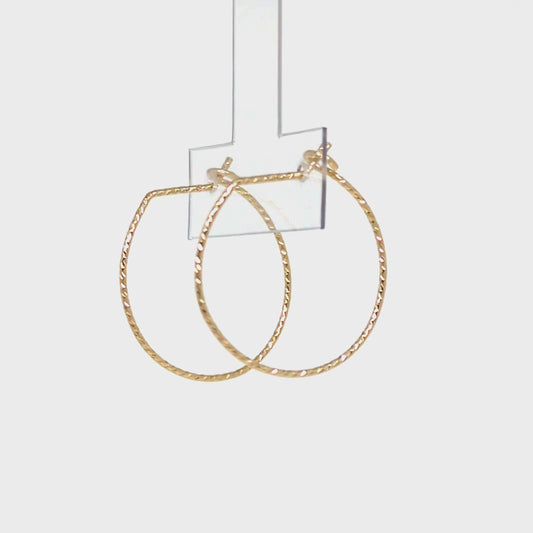 18K/10K Flower Cut Slim Hoop Earrings (Yellow Gold)