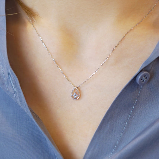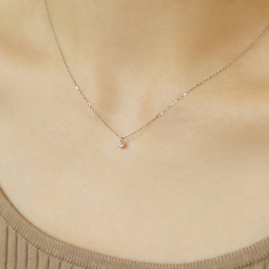 Fiolette Setting Single Diamond Necklace 0.07ct (10K White Gold)