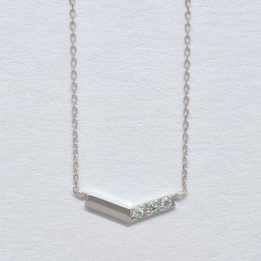 10K White Gold Ice Blue Diamond V-Shaped 3-Stone Necklace