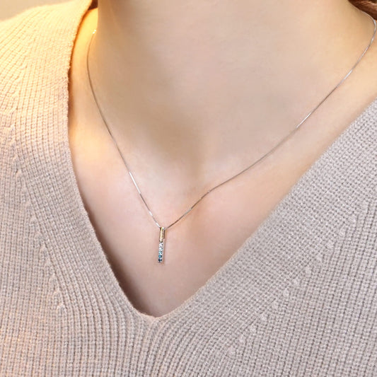 Ice Blue Diamond Gradient Straight Bar Necklace (10K White Gold)