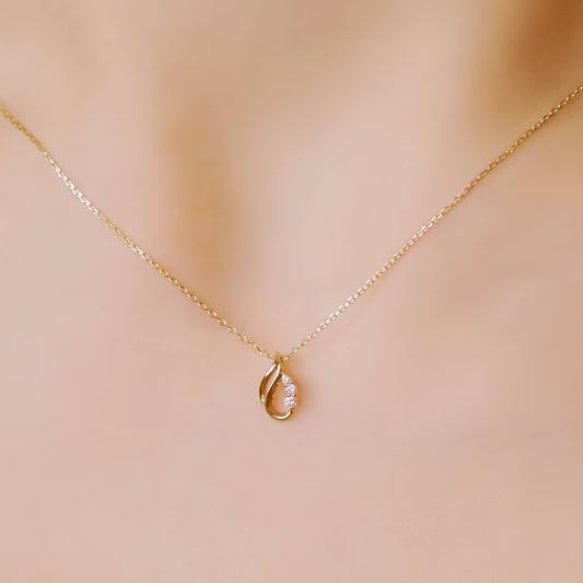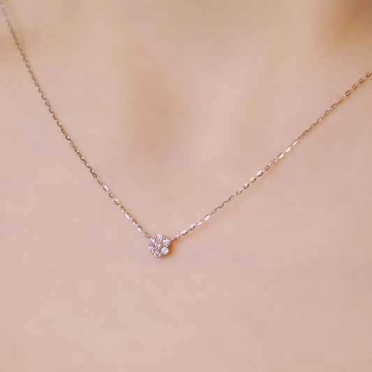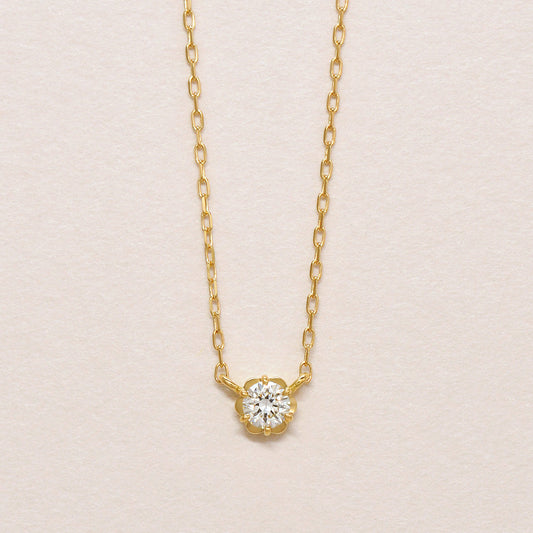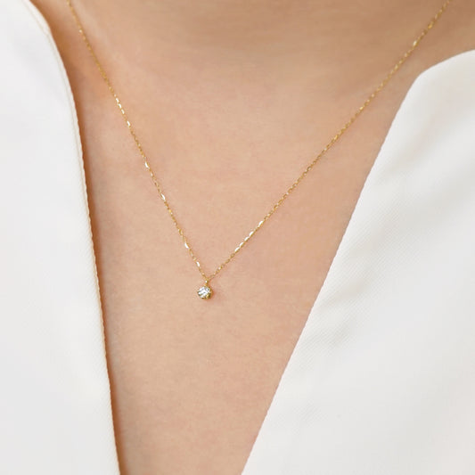 18K Yellow Gold Fiolette Setting Single Diamond Necklace 0.07ct