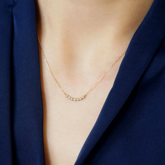 18K Yellow Gold Dancing Diamond Crescent Necklace