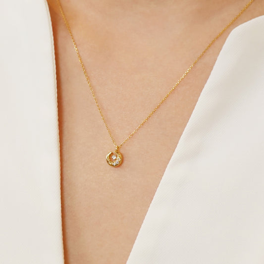 [Pannier] 18K Yellow Gold Crescent Necklace