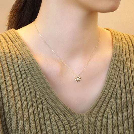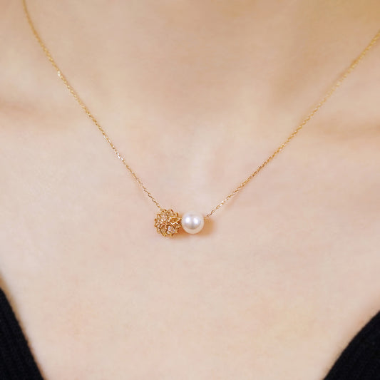 [Pannier] 10K Yellow Gold Pearl Flower Shaped Necklace