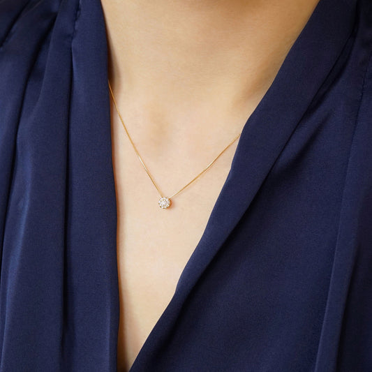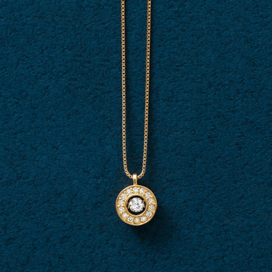 18K Yellow Gold Diamond Necklace "Full Moon" 0.13ct