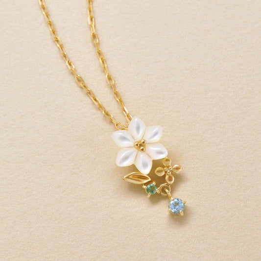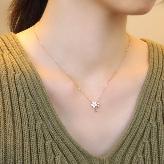 [Birth Flower Jewelry] April - Cherry Blossoms Necklace (10K Rose Gold, White Shell)