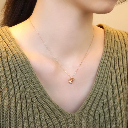 [Birth Flower Jewelry] April - Cherry Blossoms Necklace (10K Rose Gold, Rose Quartz)
