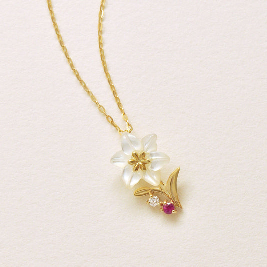 [Birth Flower Jewelry] July - Lily Necklace (10K Yellow Gold)