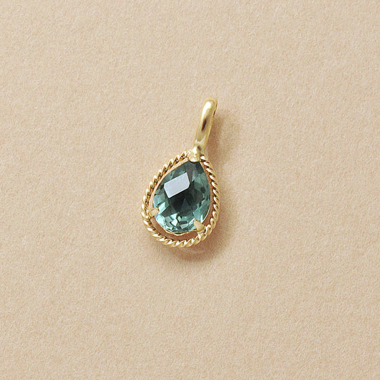 10K Green Quartz Drop Necklace Charm (Yellow Gold)