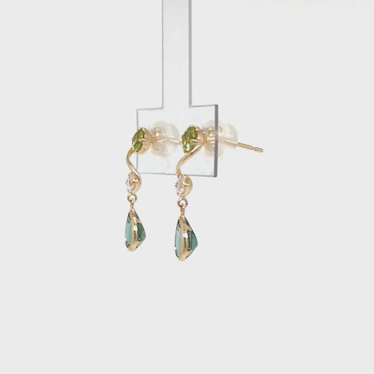 10K Green Twisted Swinging Earrings (Yellow Gold)