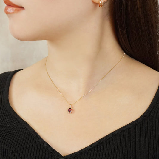 10K Rhodolite Garnet Oval Necklace Charm (Yellow Gold)