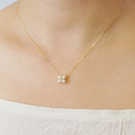 10K Diamond Pearl Clover Necklace (Yellow Gold)