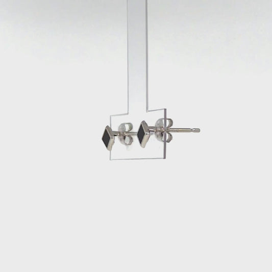 [Second Earrings] Platinum Onyx Square Cut Earrings