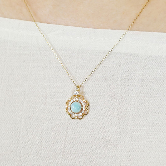 10K Larimar x Moissanite Necklace [Wave Circle] (Yellow Gold)