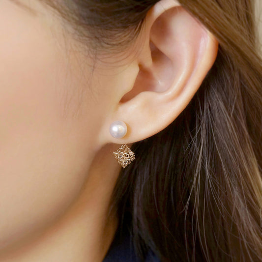 [Pannier] 18K/10K 黃金珍珠&立方體耳環